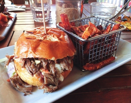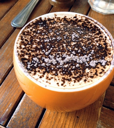 I have been dying to have lunch at 2773 and was very impressed. Such a great atmosphere, interesting delicious food & groovy serve ware…what else could you wish for! Alex had the oh so pretty Breakfast Board for 1, and I had the Pulled Pork Burger with sweet potato hot chips & a lovely cappuccino that came in a very beautiful handle free orange mug.
